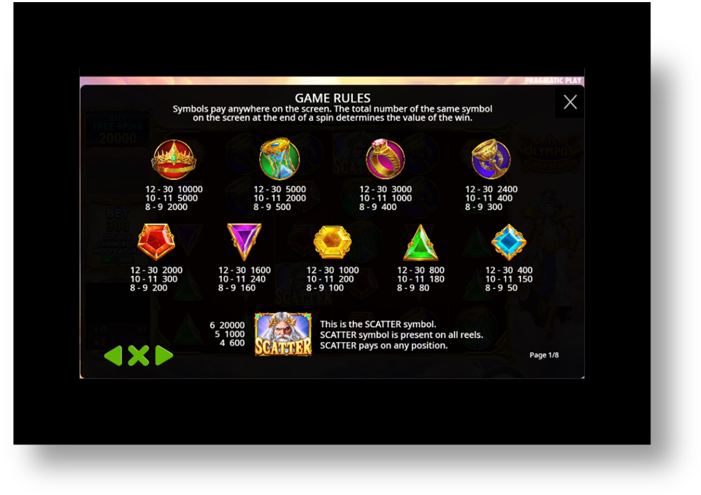 In Gates of Olympus slot the scatter symbol is Zeus and holding a lightning bolt. Land 4 or more scatter symbols to trigger the free spins feature.