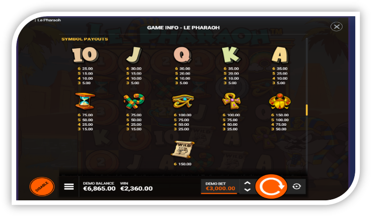 Le Pharaoh slot game overview